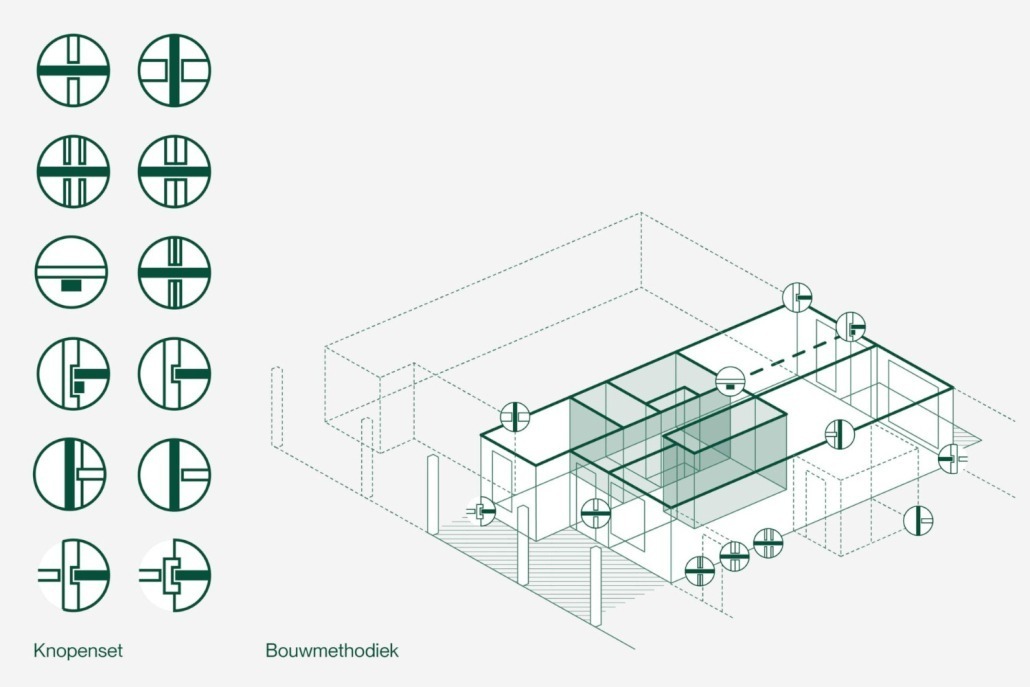 De bouwknopen vormen samen zogenoemde TimSets: een groeiende verzameling uitgewerkte principeknopen in verschillende varianten. Deze sets worden per project samengesteld en afgestemd op programma, locatie en ambities.