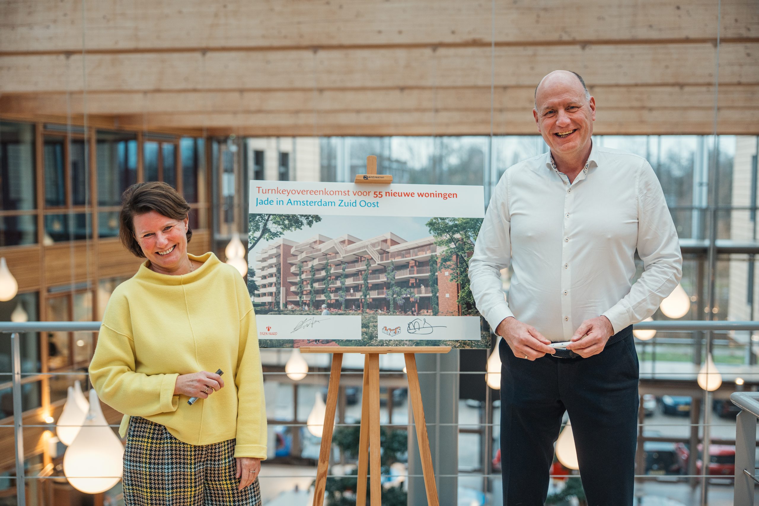 Met de ondertekening van de definitieve opdracht zetten Eigen Haard en De Nijs gezamenlijk de stap van voorbereiding naar uitvoering. De bouw van Jade kan nu écht beginnen.