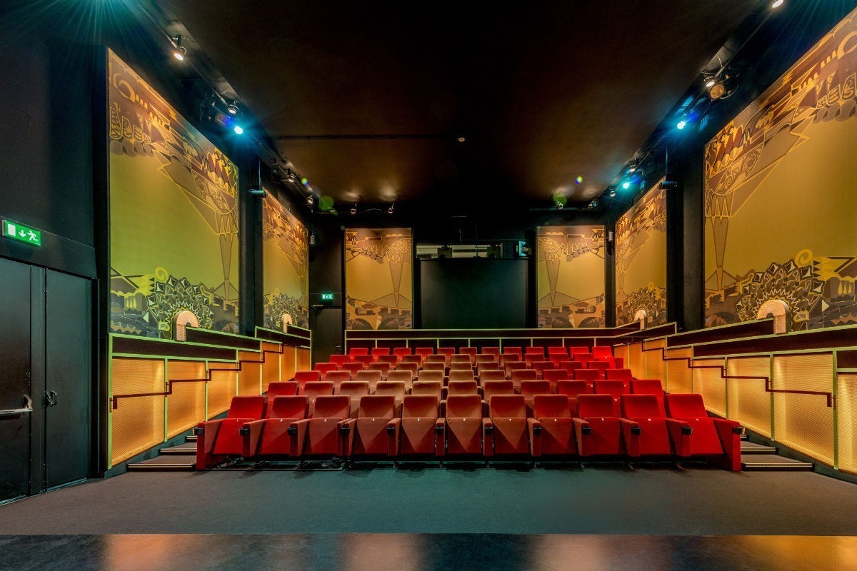 Een belangrijke rol binnen het gebouw wordt gespeeld door de centraal gelegen arena op de eerste verdieping. Deze ruimte fungeert zowel als venster naar buiten als schakel tussen verschillende publieksruimten. Vanuit de arena zijn de op de begane grond gelegen filmzalen te bereiken, die zijn uitgevoerd met een dubbele verdiepingshoogte.