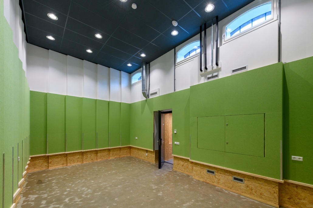 De herbestemming van het gebouw vroeg om een zorgvuldige aanpak. Het robuuste karakter van het voormalige slachthuis vormde zowel een kwaliteit als een uitdaging, vooral in combinatie met de hoge eisen aan akoestiek en comfort die horen bij intensief muzikaal gebruik.