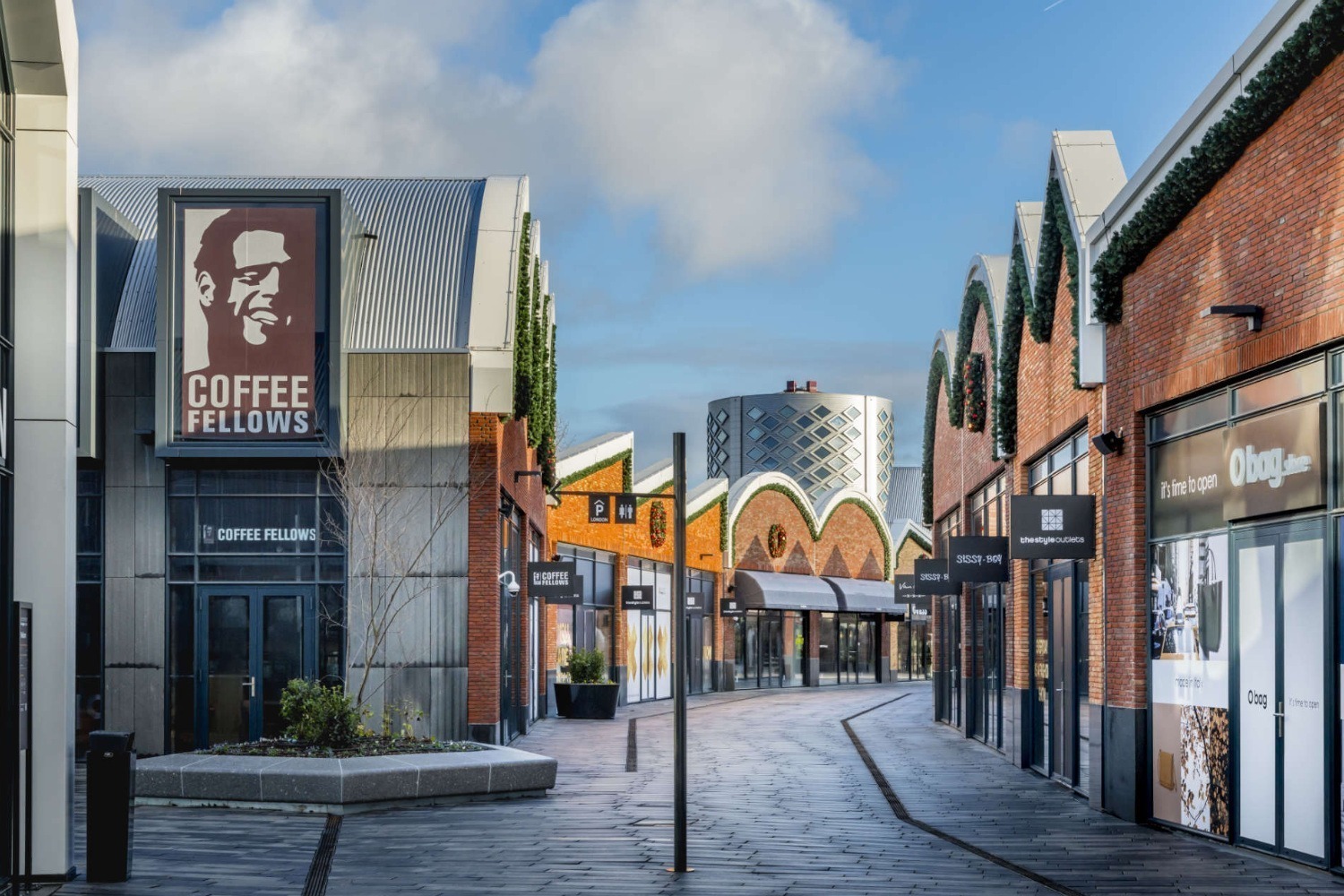 Onder het outletcentrum bevindt zich een parkeergarage, waar bezoekers hun auto kunnen parkeren. Het winkelgebied is opgezet als een open winkelpromenade met een stedelijke uitstraling, passend bij de industriële historie van de locatie.