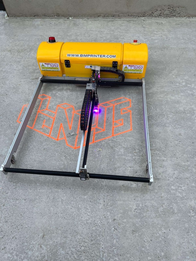 Dinsdag 6 december kwam het team van BIMprinter uit België naar Amsterdam Sloterdijk voor een bezoek aan het project Kavel O. Met hun gelijknamige robot ‘BIM-printer’ kunnen zij de overzichtsplattegronden vanuit digitale 2D tekeningen op het beton printen. Met behulp van een gekalibreerde Total Station kan de BIM-printer de lijnen van onder andere binnenwanden op het beton aanbrengen. Eerst wordt hiervoor een verfspray gebruikt en de verf wordt daarna door middel van een laser ingebrand zonder schade aan het beton of aan kabels te veroorzaken.